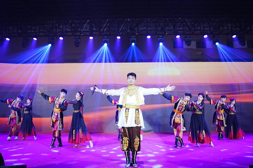 在“向未來(lái)”篇章中,國(guó)風(fēng)街舞《山河圖》將傳統(tǒng)與現(xiàn)代巧妙結(jié)合,展現(xiàn)了青年的創(chuàng)新精神和愛(ài)國(guó)情懷。溫暖歌曲《凡星》以學(xué)校師生積極響應(yīng)省委、省政府“百千萬(wàn)工程”的相關(guān)部署,奔赴鄉(xiāng)村一線為祖國(guó)做貢獻(xiàn)的情景為背景。歌舞劇《洗衣歌》則通過(guò)藝術(shù)表演的形式,展現(xiàn)了軍民共建的溫暖情懷。歌舞表演《德誠(chéng)才精強(qiáng)國(guó)有我》和大合唱《百年恰是風(fēng)華正茂》將晚會(huì)推向了高潮。晚會(huì)最后在全場(chǎng)師生共同揮舞國(guó)旗、千人齊唱《歌唱祖國(guó)》的嘹亮歌聲中圓滿落幕。