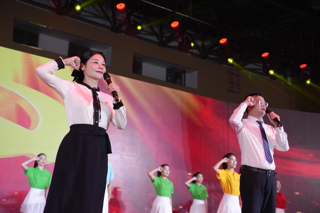 10月25日,由校團(tuán)委主辦、組織統(tǒng)戰(zhàn)部和宣傳部協(xié)辦的“禮贊新時(shí)代 ? 揚(yáng)帆向未來(lái)” ——慶祝新中國(guó)七十五周年華誕暨2024年迎新文藝晚會(huì)在職教城校區(qū)成功舉辦!學(xué)校黨委書(shū)記葉忠明,黨委副書(shū)記方燕,黨委委員、副校長(zhǎng)揭英榮,黨委委員、副校長(zhǎng)張小廣出席晚會(huì),相關(guān)職能部門(mén)負(fù)責(zé)人、各學(xué)院領(lǐng)導(dǎo)、教師代表與2024級(jí)新生代表近4000人齊聚現(xiàn)場(chǎng)共同見(jiàn)證這一盛況。晚會(huì)同步開(kāi)啟線上直播和圖片直播,一萬(wàn)多名師生、校友匯聚云端觀看精彩演出。