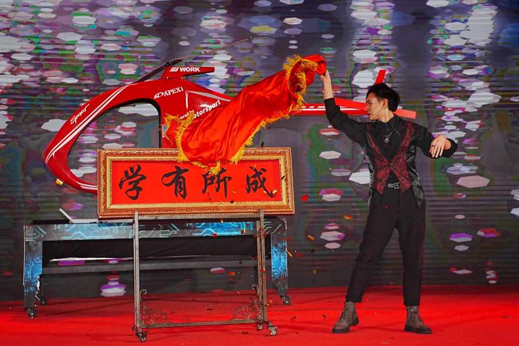 在“正青春”篇章中,啦啦操《向陽(yáng)而生》展現(xiàn)了青春的活力與激情。《丹心向黨》話劇的首演,則通過(guò)講述中國(guó)共產(chǎn)黨杰出的地下工作者、我校首任校長(zhǎng)柯麟醫(yī)生的光輝事跡,弘揚(yáng)了偉大建黨精神。新疆歌舞表演《咱們新疆好地方》帶領(lǐng)觀眾穿越時(shí)空,感受新疆大地的遼闊與美麗。校友方琮琪團(tuán)隊(duì)的魔術(shù)表演《夢(mèng)之旅》為晚會(huì)增添了神秘色彩。歌舞《有我》,讓新時(shí)代青年感知?dú)v史的厚重和時(shí)代的使命。走秀表演《國(guó)風(fēng)俠韻》,沿著從古至今的時(shí)間線,帶領(lǐng)同學(xué)們感受服裝雅韻和青春魅力。