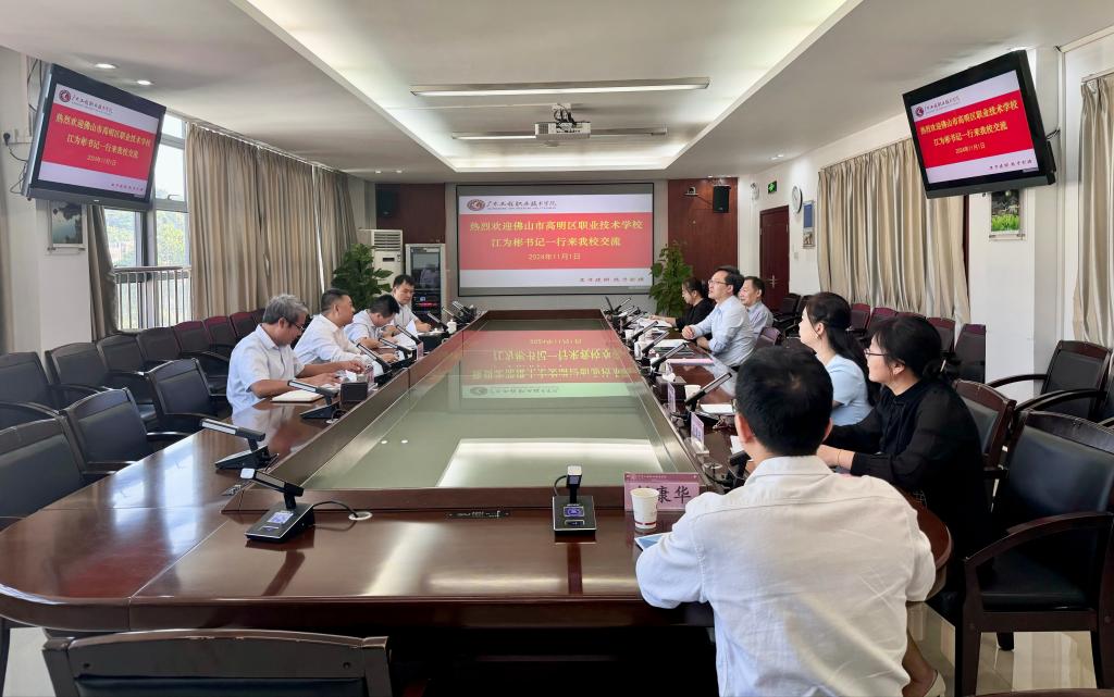 江為彬書記介紹了佛山市高明區(qū)職業(yè)技術(shù)學(xué)校基本概況,并就雙方合作的中高職貫通三二分段專業(yè)的課程建設(shè)、教學(xué)等方面進(jìn)行了互動(dòng)交流,希望能共同推進(jìn)兩校中高職貫通三二分段高質(zhì)量發(fā)展。