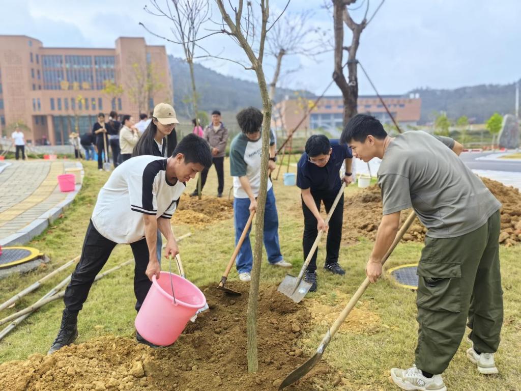 活動現(xiàn)場,校領導與師生分工協(xié)作,揮鍬培土、扶苗澆水、施肥添土,種下一顆顆樹木,為春色校園增添了一抹生機。此次植樹活動,進一步彰顯了高職院校服務生態(tài)文明建設的責任擔當,為構(gòu)建人與自然和諧共生的現(xiàn)代化職教體系注入新動能。學校將持續(xù)深化“勞動教育+”實踐模式,引導青年學子在植樹造林的躬身實踐中強筋骨、長才干、鑄信仰,讓青春汗水澆灌出絢麗的生態(tài)文明之花與中外友誼之花!