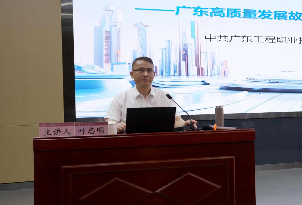 在授課中,葉忠明書記圍繞2025年廣東省高質(zhì)量發(fā)展大會內(nèi)容,以廣汽埃安、大疆等粵企為例,生動講述廣東企業(yè)從“跟跑”到“并跑”再到“領跑”的創(chuàng)新故事,充分展示了廣東近年來在科技創(chuàng)新和產(chǎn)業(yè)轉(zhuǎn)型升級方面取得的顯著成就,深刻詮釋了廣東高質(zhì)量發(fā)展的“突圍密碼”。他強調(diào),“廣東的實踐證明,新質(zhì)生產(chǎn)力不是簡單替代傳統(tǒng)產(chǎn)業(yè),而是以創(chuàng)新為紐帶,推動產(chǎn)業(yè)鏈向高端化、智能化、綠色化升級,是先進生產(chǎn)力形態(tài),更是廣東實現(xiàn)從制造大省向制造強省跨越的關鍵所在。”
