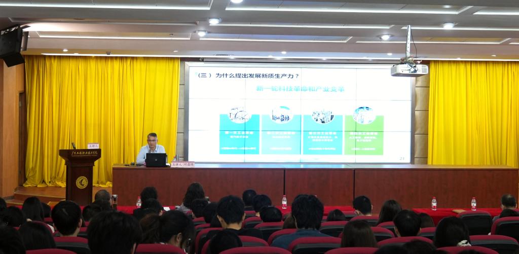 為進一步深入學習宣講習近平新時代中國特色社會主義思想,引導我校青年學生學習貫徹2025年全省高質(zhì)量發(fā)展大會精神,激勵青年學子勇?lián)鷷r代使命,積極投身高質(zhì)量發(fā)展浪潮,為廣東乃至全國的經(jīng)濟社會發(fā)展貢獻青春力量,3月12日、14日,學校黨委書記葉忠明以《加快發(fā)展新質(zhì)生產(chǎn)力——廣東高質(zhì)量發(fā)展故事:從制造大省到制造強省》為主題,先后為廣州校區(qū)、清遠校區(qū)共300多名學生講授了今年春季學期“思政第一課”。