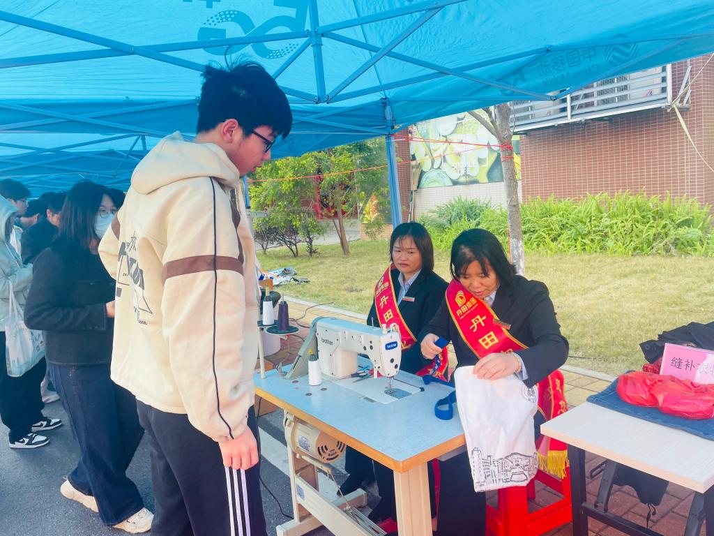 兩校區(qū)活動現(xiàn)場均含有服務(wù)區(qū)、宣傳區(qū)、體驗區(qū)、咨詢區(qū)等四維一體的綜合“服務(wù)集市”,其中中醫(yī)理療、縫補衣物、義務(wù)維修、單車打氣、超聲波清洗眼鏡等服務(wù)模塊深受同學(xué)們的喜愛;食堂推出的特色小吃、水果、糕點任意品嘗,派發(fā)奶茶、蛋撻、麻薯兌換券等更是熱鬧火爆;還有街道、派出所有血液機構(gòu)人員前來我校做垃圾分類、消防、禁毒、反詐、獻血等宣傳活動,活動現(xiàn)場熱鬧非凡。既讓師生直觀感受后勤服務(wù)的溫度,也收集了師生對后勤服務(wù)的滿意度,“很開心,阿姨幫我縫補了包包、扣子、破洞衣服,手藝很好!”、“眼鏡清洗的非常干凈,瞬間眼前一亮!”、“太好了,我的小書柜修好了!”、“物業(yè)維修比較及時,師傅很熱情”、“宿管阿姨服務(wù)態(tài)度熱情!”、“我的肩頸痛,醫(yī)生幫我理療后,現(xiàn)在舒服多了”、“體驗了心肺復(fù)蘇操作,我漲知識了”……同學(xué)們紛紛留言。