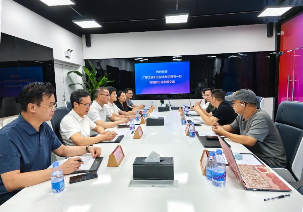 葉忠明書記向企業(yè)介紹了我校的基本情況以及發(fā)展規(guī)劃。他指出,廣東工程職業(yè)技術(shù)學(xué)院作為服務(wù)大灣區(qū)新一代信息技術(shù)人才培養(yǎng)的高職院校,在未來將會對人工智能與機(jī)器人技術(shù)相關(guān)項(xiàng)目給予更大的關(guān)注和投入,并提出雙方要在前期合作基礎(chǔ)上,進(jìn)一步把產(chǎn)教融合做深做實(shí)。