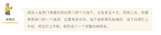 等最后把鴉片煙全部銷毀后,打開閘門,趁著海水退潮,把泥漿般的水一下子帶入大海。等水徹底放完之后,再把水池子清洗一遍,等待下一輪的銷煙。兩個(gè)銷煙池可以輪流不停地工作。