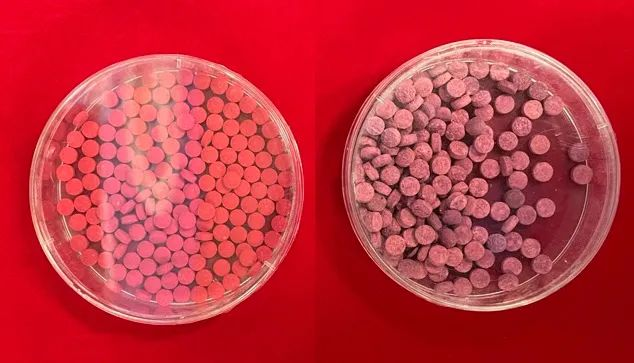 麻古的外觀多為圓形、藥片狀,黃連素藥片大小,與搖頭丸相似,通常呈玫瑰紅、橘紅、蘋果綠等色,添加色素香料呈不同顏色和香味,上面印有“R”“WY”“66”“888”等標(biāo)記。