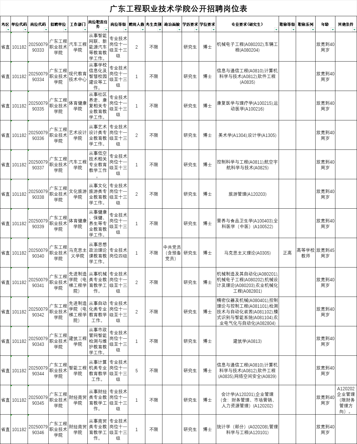 現(xiàn)因發(fā)展需要,我校參加了由中共廣東省委組織部、廣東省人力資源和社會保障廳組織開展的廣東省事業(yè)單位2025年集中公開招聘高層次和急需緊缺人才第二輪滾動招聘工作,共公開招聘高層次人才23名,獲聘人員為事業(yè)單位編制人員,歡迎符合招聘條件的人才報考我校(歸屬考區(qū):省直,單位代碼:101182,崗位代碼:2025007990333-2025007990346),崗位具體信息如下: