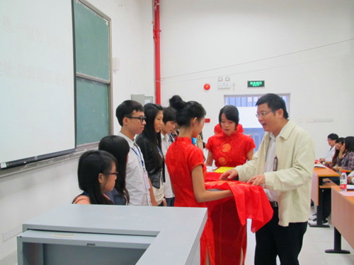 陳國雄書記為在迎新工作中表現(xiàn)積極的個人頒發(fā)證書