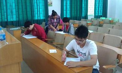 學(xué)生全神貫注填寫應(yīng)聘登記表