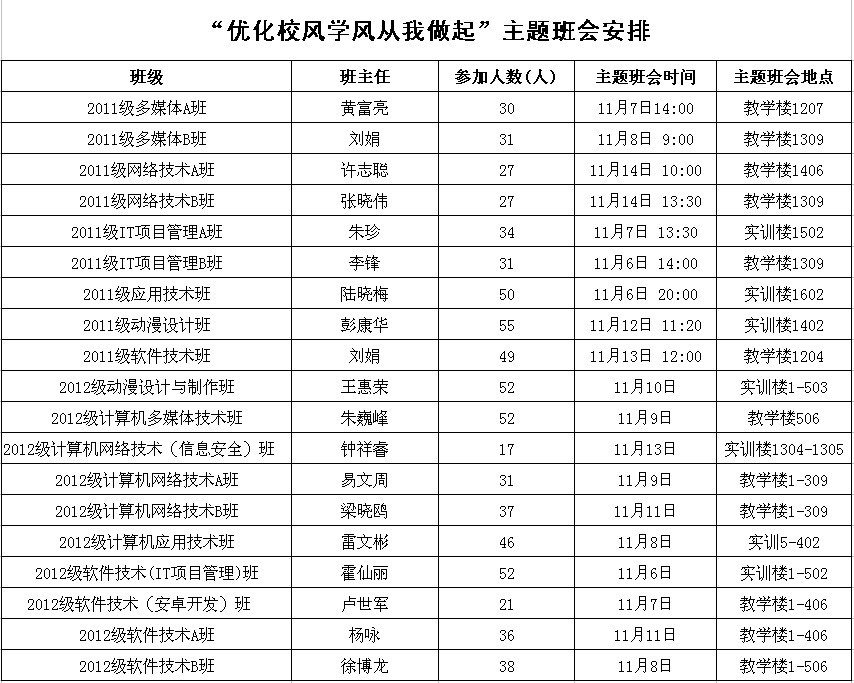 優(yōu)良的學(xué)風(fēng)校風(fēng)是關(guān)系學(xué)院教學(xué)質(zhì)量和壯大發(fā)展的重要方面。為了進(jìn)一步加強(qiáng)學(xué)生管理,提高內(nèi)涵建設(shè)水平,促進(jìn)我系的學(xué)風(fēng)校紀(jì)建設(shè),營造良好的育人環(huán)境,根據(jù)我院《關(guān)于開展"倡導(dǎo)廣東精神,提升學(xué)子素質(zhì)"學(xué)風(fēng)校紀(jì)建設(shè)活動(dòng)的通知》,我系迅速成立組織機(jī)構(gòu),制定工作計(jì)劃,開展了相關(guān)活動(dòng):11月6日,我系召開班主任會(huì)議,要求各班主任到各班傳達(dá)我院通知的精神,并做好相應(yīng)的學(xué)風(fēng)校風(fēng)校紀(jì)教育。至 11月13日,我系先后召開學(xué)生干部會(huì)議、"優(yōu)化校風(fēng)學(xué)風(fēng)從我做起"主題班會(huì),在認(rèn)真學(xué)習(xí)活動(dòng)方案的基礎(chǔ)上,組織每位學(xué)生簽訂《學(xué)風(fēng)校紀(jì)建設(shè)"十不為"》承諾書,讓每個(gè)學(xué)生對活動(dòng)有清醒的認(rèn)識(shí)。