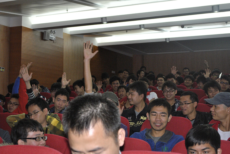 緊接著,李志弘院長用一個問題,引入了本次講座的主題。"你讀大學的目的是什么?"他講道,如今中國社會出現(xiàn)用工荒的現(xiàn)狀,以致于各中小企業(yè)招聘門檻低、待遇高,因此導致許多學生對讀取大學的必要性產(chǎn)生質(zhì)疑。此時,李志弘院長列舉了一個真實的案例,蘇州某人"力"市場(非人才市場)有公司竟貼出招聘公告:四肢健全者皆可錄用,月薪4500,包吃包住。這么低的要求,相對而言卻有這么不錯的待遇,著實讓現(xiàn)在的學生心里出現(xiàn)疑慮。但這樣一個招聘信息的背后又隱藏著什么?"用工荒"時期,以獲得利益最大化為目的的企業(yè)不得不出此招來使公司正常運營。那再過一段時間,大家都受誘而來,人力過剩,又將會是什么結(jié)果呢?李志弘院長分析道。