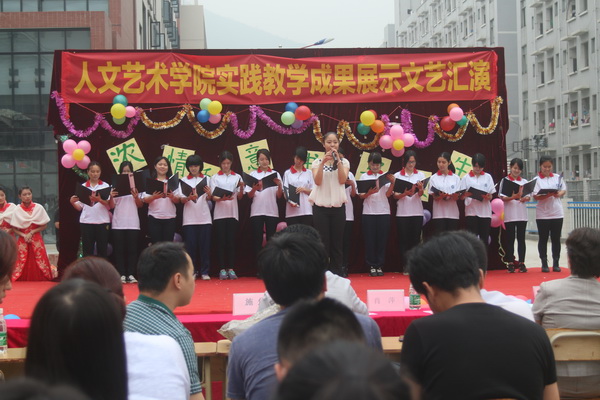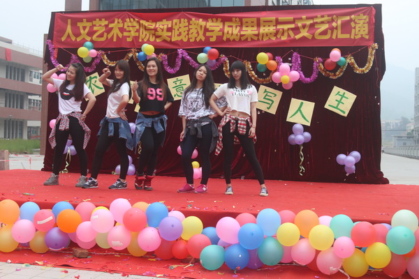 4月24日中午,學院就業(yè)廣場歌舞悅目、歡笑滿天、掌聲不息,學校教務處肖萍處長、督學朱文堅教授、教學質量監(jiān)控處甘利副教授、院團委李冠文老師等領導和嘉賓應邀出席2014年人文藝術學院實踐教學成果展示文藝匯演,參加此次文藝匯演的還有人文藝術學院全體師生及學校各社團的學生代表。