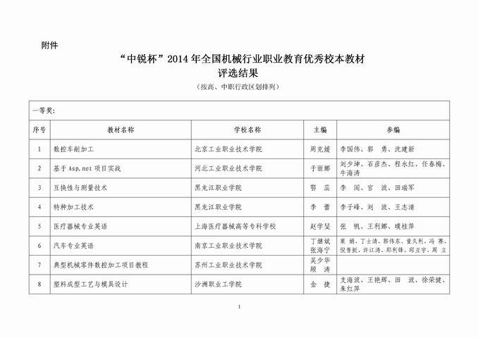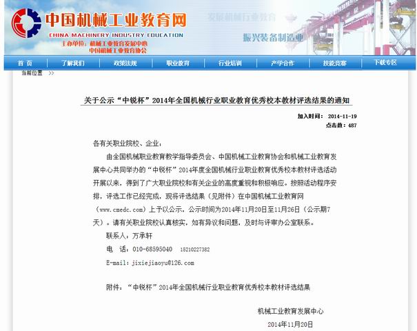 由全國機(jī)械職業(yè)教育教學(xué)指導(dǎo)委員會(huì)、中國機(jī)械工業(yè)教育協(xié)會(huì)和機(jī)械工業(yè)教育發(fā)展中心共同舉辦的"中銳杯"2014年度全國機(jī)械行業(yè)職業(yè)教育優(yōu)秀校本教材評(píng)選工作已經(jīng)完成,我校能源工程學(xué)院黨總支書記、高級(jí)工程師曹立生主編的校本教材《沖壓工藝與模具設(shè)計(jì)》喜獲一等獎(jiǎng)。參加本次評(píng)選的教材共有400多本,其中18本獲一等獎(jiǎng),31本獲二等獎(jiǎng),60本獲三等獎(jiǎng)。《沖壓工藝與模具設(shè)計(jì)》是模具專業(yè)核心課程的配套教材,由本校與廣州市金通達(dá)濾清器制造有限公司合作編寫,參加編寫的還有胡光明、牛仝旺老師以及企業(yè)兼職教師金通達(dá)濾清器制造有限公司簡子坤工程師、總經(jīng)理。( 能源工程學(xué)院 撰稿人:李碧方 審稿人:周建珊)