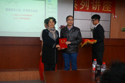 周教授的講座由西方文學(xué)透析到中國現(xiàn)況,發(fā)人深省。最后周教授總結(jié)說,假如沒有上帝,世界將會信仰坍塌,道德失范,誠信缺失。重拾信仰,重拾儒釋道,是當(dāng)下中國解決道德困境的根本途徑。(人文藝術(shù)學(xué)院 盧壯壯供稿)