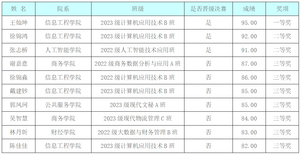 秉著激勵學生們積極參賽的精神,圖書館根據(jù)校內選拔賽成績評出前10名給予校內表彰,頒發(fā)榮譽證書。其中一等獎1名,二等獎2名,三等獎8名,獲獎名單如下: