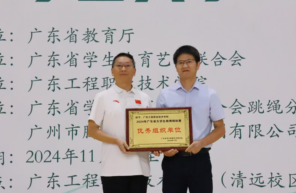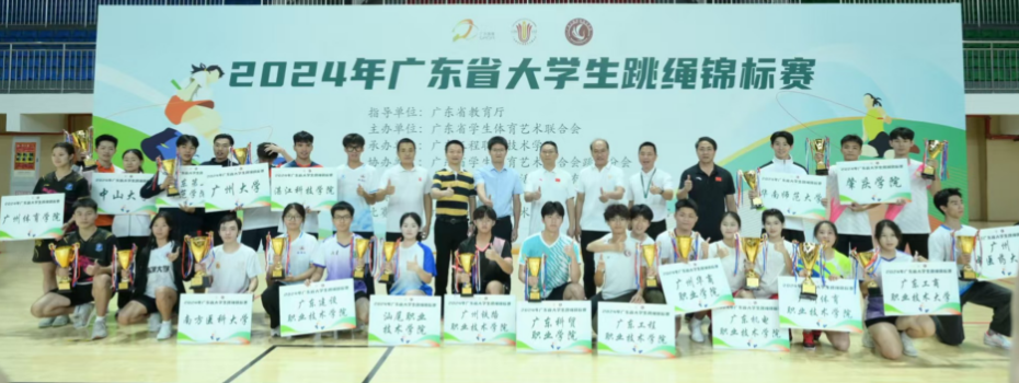 在學(xué)校領(lǐng)導(dǎo)的關(guān)心指導(dǎo)下,在黨政辦公室、繼續(xù)教育學(xué)院、團(tuán)委、總務(wù)后勤部、現(xiàn)代教育技術(shù)中心、機(jī)電(電梯)工程學(xué)院等部門的大力支持下,由廣東省學(xué)生體育藝術(shù)聯(lián)合會主辦的2024年廣東省大學(xué)生跳繩錦標(biāo)賽于11月8日至10日在我校清遠(yuǎn)校區(qū)體育館順利進(jìn)行,廣東省教育廳體衛(wèi)藝處二級調(diào)研員董業(yè)權(quán)蒞臨指導(dǎo)工作,我校吳志敏副校長在開幕式上致歡迎辭并參加頒獎儀式。