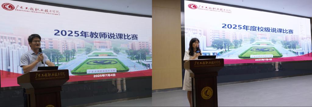 為進(jìn)一步深化教育教學(xué)改革,提升教師專業(yè)能力,搭建教學(xué)經(jīng)驗(yàn)交流平臺(tái),廣東工程職業(yè)技術(shù)學(xué)院于7月4日在省職教城校區(qū)辦公樓報(bào)告廳及線上分會(huì)場(chǎng)舉辦了2025年校級(jí)說課比賽。學(xué)校副校長(zhǎng)吳志敏出席活動(dòng),特邀評(píng)審專家李竹君教授及各二級(jí)學(xué)院副院長(zhǎng)組成評(píng)審團(tuán),共同參與這場(chǎng)聚焦教學(xué)核心能力的專業(yè)比拼。比賽由教務(wù)部部長(zhǎng)朱珍主持,各校賽參賽教師、二級(jí)學(xué)院院長(zhǎng)、副院長(zhǎng)、專業(yè)主任到場(chǎng)觀摩學(xué)習(xí),全體授課教師線上觀摩學(xué)習(xí)。