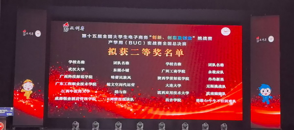近日,第十五屆全國大學(xué)生電子商務(wù)“創(chuàng)新、創(chuàng)意及創(chuàng)業(yè)”挑戰(zhàn)賽產(chǎn)學(xué)用(BUC)實戰(zhàn)賽全國總決賽在江西應(yīng)用科技學(xué)院舉行,共有來自全國29個省、市、自治區(qū)的92所高校、116個參賽團(tuán)隊晉級全國總決賽。歷經(jīng)省賽和國賽的激烈角逐,我校創(chuàng)新創(chuàng)業(yè)學(xué)院雙創(chuàng)基地的鯨文空間代運(yùn)營(團(tuán)隊成員:陳凱琪、陳景輝、林梓涵、袁愛坪和朱烯熙,批導(dǎo)老師:余楚君、陳丹云)參賽團(tuán)隊最終獲得產(chǎn)學(xué)用(BUC)實戰(zhàn)賽全國總決賽二等獎。