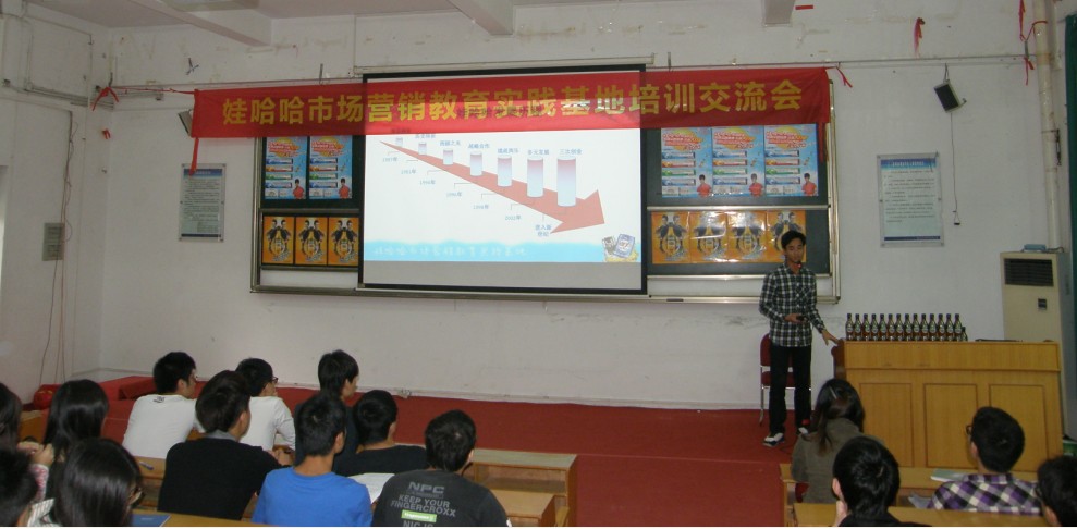 許經(jīng)理對娃哈哈集團和整個活動進行了簡要的介紹,并通過與參賽者的互動游戲,培訓(xùn)學(xué)生如何開展?fàn)I銷活動以及要注意的事項。同時,還讓參賽者品嘗了公司的新產(chǎn)品。通過此次培訓(xùn),各系參賽者對比賽有了更充分的了解,對贏得優(yōu)勝充滿了信心。