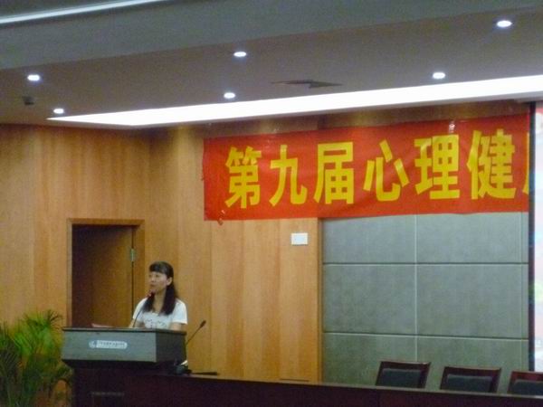 開幕式上,首先,張永強老師簡要介紹了本屆心理健康活動月主要活動內容;接著桂愛民副部長發(fā)表了講話,號召年輕大學生要從認識自我開始,建設和諧心理,并希望全院師生參加進心理健康活動中來,提高心理素質。