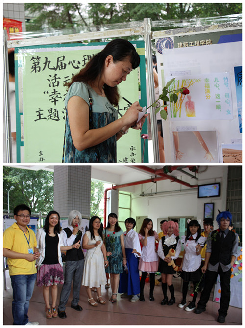 在作品展示現(xiàn)場,喜聞樂見的動漫設(shè)計作品展和動漫cosplay俏皮的真人秀,將心理健康和個性發(fā)展合二為一,吸引師生駐足欣賞。師生們在漫畫作品前流連忘返、細細品味其中的"幸福",并為感動自己的"幸福瞬間"投下神圣的一票。學(xué)生工作部桂愛民副部長、張永強科長,建筑工程學(xué)院學(xué)工隊伍的全體成員等蒞臨投票現(xiàn)場,將本次活動推向高潮。