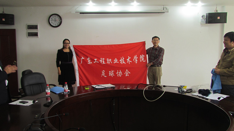 2013年11月14日下午,由學(xué)院工會、學(xué)院體育運動委員會共同發(fā)起組織的廣東工程職業(yè)技術(shù)學(xué)院足球協(xié)會成立大會在校行政樓506室隆重開幕。學(xué)院黨委副書記李軍同志,學(xué)工部部長張華同志,學(xué)院工會專職副主席陳紀(jì)鋒同志,學(xué)院體育運動委員會秘書長、體育部副主任郭希同志等相關(guān)領(lǐng)導(dǎo)出席了開幕式。足球協(xié)會朱靖同志主持了開幕儀式。