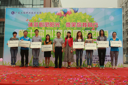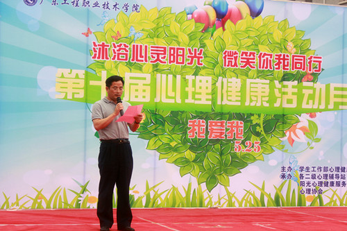 5月12日中午,第十屆心理健康活動月開幕式暨文藝匯演在創(chuàng)業(yè)文化廣場成功舉辦。學校黨委副書記李軍博士,學工部桂愛民副部長、劉山發(fā)副部長、各二級學院書記、副書記以及負責心理健康工作的輔導員老師、學生代表一起出席了開幕式。
