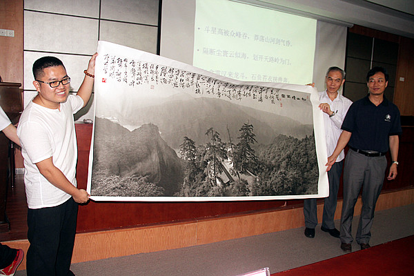 講座結(jié)束前,伍錦良向校工會贈送了其攝影作品《松山煙雨圖》。(學(xué)校工會 教職工攝影協(xié)會 供稿)