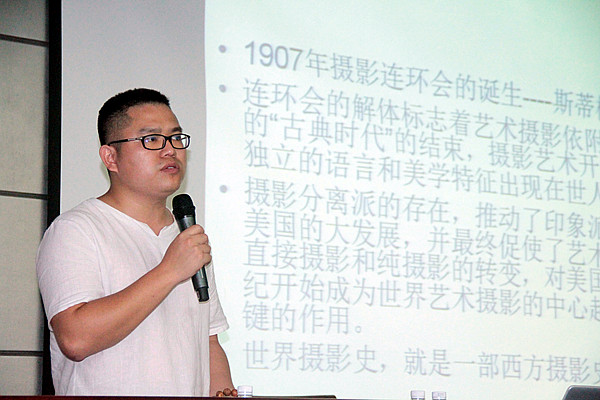 本次講座的主講人是人文藝術(shù)學(xué)院教師、教職工攝影協(xié)會副會長伍錦良。講座的主題是《攝影的東方智慧》。伍錦良從攝影術(shù)的發(fā)展簡史入手,通過中西方在繪畫、攝影方面表現(xiàn)的差異對比,進(jìn)而提出了如何將中國的傳統(tǒng)文化注入到攝影創(chuàng)作中去。伍錦良指出:屬于中國智慧的攝影現(xiàn)今還沒有真正出現(xiàn),如何將中國智慧與攝影術(shù)有機的結(jié)合是攝影創(chuàng)作的新命題。伍錦良對攝影藝術(shù)的見解深刻而獨到,讓師生們感受和領(lǐng)略到攝影藝術(shù)的魅力。