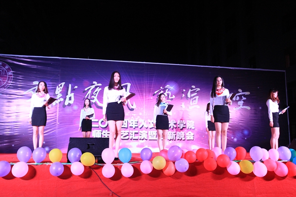 2014年12月5日晚7點(diǎn),人文藝術(shù)學(xué)院師生文藝匯演暨迎新晚會(huì)"文點(diǎn)夜風(fēng)藝渲星空"在學(xué)校行政樓前如期舉行。晚會(huì)包括歌曲、舞蹈、器樂演奏、小品、朗誦以及T臺(tái)秀等各類型共計(jì)12個(gè)節(jié)目。