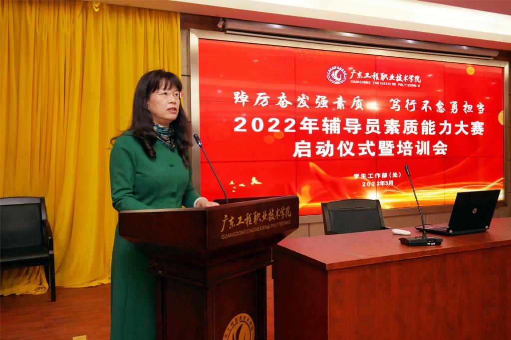 3月3日下午,輔導(dǎo)員素質(zhì)能力大賽啟動(dòng)儀式暨培訓(xùn)會(huì)在廣州校區(qū)圖書館報(bào)告廳舉行,特邀廣州科技職業(yè)技術(shù)大學(xué)黨委書記、華南理工大學(xué)碩士研究生導(dǎo)師馮小寧作專題培訓(xùn)。學(xué)校黨委副書記方燕出席并動(dòng)員講話,各學(xué)院黨總支書記、副書記,全體輔導(dǎo)員,學(xué)生工作部全體成員參加會(huì)議,會(huì)議由學(xué)生工作部部長(zhǎng)黃馥麗主持。