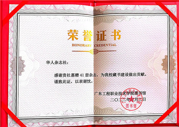 鄧中云館長(zhǎng)代表圖書(shū)館接收了《華人》雜志社捐贈(zèng)的雜志,對(duì)《華人》雜志社的捐贈(zèng)表示誠(chéng)摯的感謝,并向《華人》雜志社頒發(fā)了捐贈(zèng)證書(shū)。他表示捐贈(zèng)雜志進(jìn)一步豐富了圖書(shū)館的館藏資源,對(duì)圖書(shū)館的發(fā)展建設(shè)有著很好的促進(jìn)作用,圖書(shū)館將對(duì)捐贈(zèng)雜志進(jìn)行妥善保管,盡快提供給讀者閱讀使用,并祝愿《華人》雜志越辦越好。