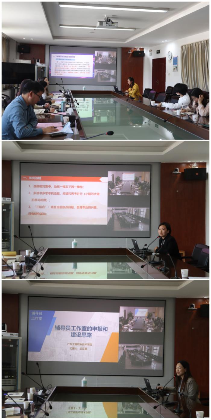 2022年3月9日下午,由學(xué)生工作部主辦、建筑工程學(xué)院承辦的“學(xué)思踐悟”輔導(dǎo)員思政沙龍第九期活動(輔導(dǎo)員思政工作理論和實(shí)踐研究)分別在廣州校區(qū)辦公樓615、省職教城校區(qū)辦公樓411通過遠(yuǎn)程連線成功舉行。學(xué)生工作部部長黃馥麗、副部長曾婉玲、各二級學(xué)院副書記及輔導(dǎo)員代表等參加了此次活動。本期沙龍活動還特邀了三位主講嘉賓:馬克思主義學(xué)院楊英老師、學(xué)生工作部張文婷老師、管理工程學(xué)院王江麗老師。活動由建筑工程學(xué)院黨總支副書記晉保山主持。