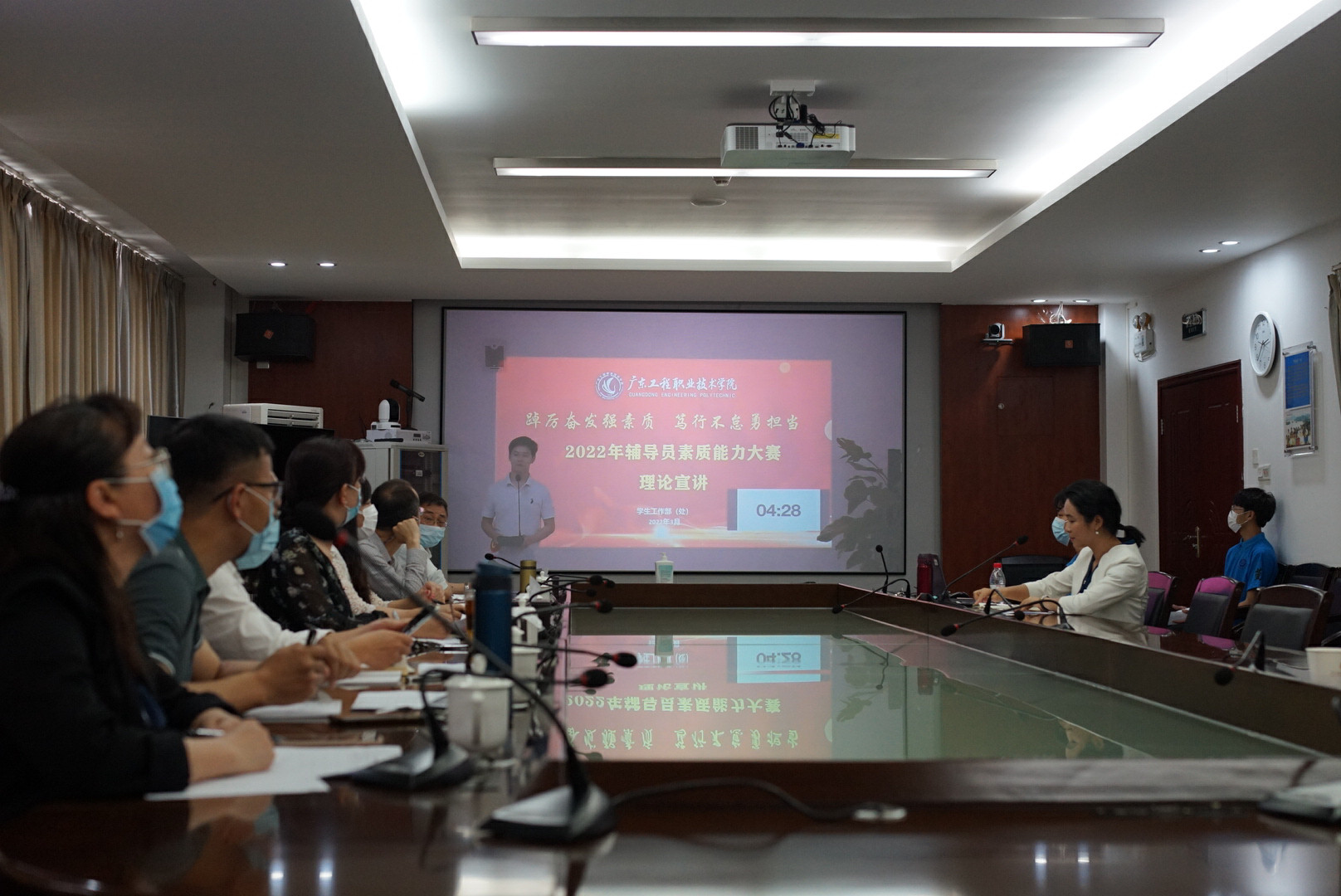 草長(zhǎng)鶯飛春滿(mǎn)園,踔厲奮進(jìn)正當(dāng)時(shí),4月2日上午,我校2022年輔導(dǎo)員素質(zhì)能力大賽總決賽在廣州校區(qū)辦公樓511室舉行。大賽邀請(qǐng)了5所高校專(zhuān)家擔(dān)任評(píng)委。學(xué)校黨委副書(shū)記方燕、各學(xué)院黨總支副書(shū)記、輔導(dǎo)員、學(xué)生工作部全體成員現(xiàn)場(chǎng)觀摩,省職教城校區(qū)輔導(dǎo)員連線觀摩。