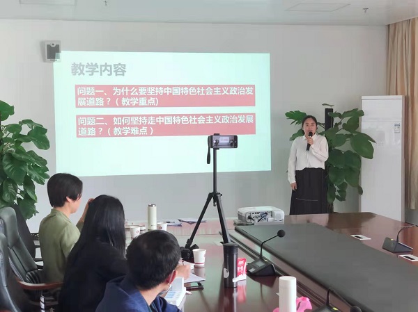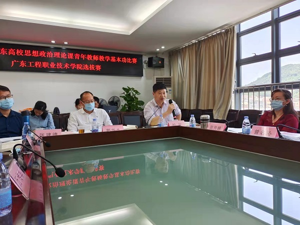 為深入貫徹落實(shí)習(xí)近平總書記關(guān)于學(xué)校思想政治理論課建設(shè)的重要論述和在黨史學(xué)習(xí)教育動員大會上的重要講話精神,推進(jìn)黨史學(xué)習(xí)教育有機(jī)融入思政課,不斷增強(qiáng)我校思想政治理論課的思想性、理論性和親和力、針對性,推動進(jìn)我校思政課建設(shè)高質(zhì)量發(fā)展, 4月9日,我校通過遠(yuǎn)程視頻方式分別在廣州校區(qū)辦公樓615會議室和省職教城校區(qū)辦公樓411會議室開展2022年度廣東高校思想政治理論課青年教師教學(xué)基本功比賽校內(nèi)選拔賽初賽。馬克思主義學(xué)院院長郭華生、副院長柏欣,黨總支負(fù)責(zé)人張建德,《德法》課教研室主任萬傳華、陳月婷副教授,《概論》課教研室主任鄒開明、黨課教研室主任曾名沁擔(dān)任了本次比賽的評委,并進(jìn)行了現(xiàn)場指導(dǎo)。