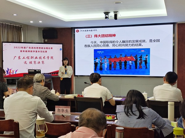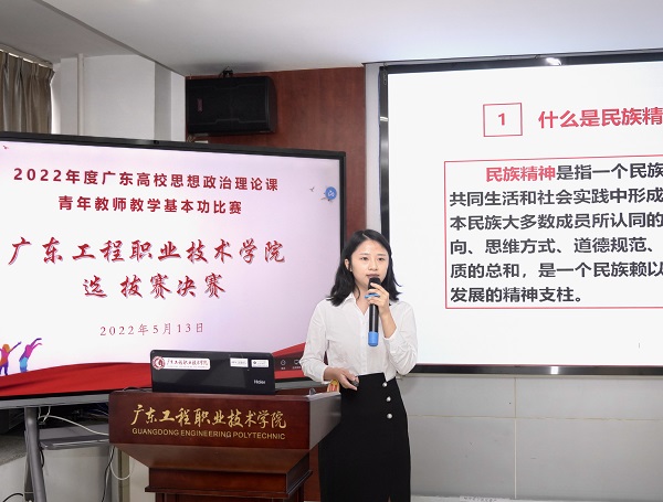 2022年5月13日,我校在廣州校區(qū)辦公樓511室舉辦了2022年度廣東高校思想政治理論課青年教師教學基本功比賽校內(nèi)選拔賽決賽,學校黨委副書記方燕教授、廣州番禺職業(yè)技術學院曹群教授、順德職業(yè)技術學院董同彬教授、廣東農(nóng)工商職業(yè)技術學院李曉培教授、廣東機電職業(yè)技術學院林國強教授擔任了比賽的評委,我校馬克思主義學院院長郭華生在開幕上致辭,并主持了決賽。我校及其他兄弟院校專兼思政課教師近50人現(xiàn)場觀摩了比賽。