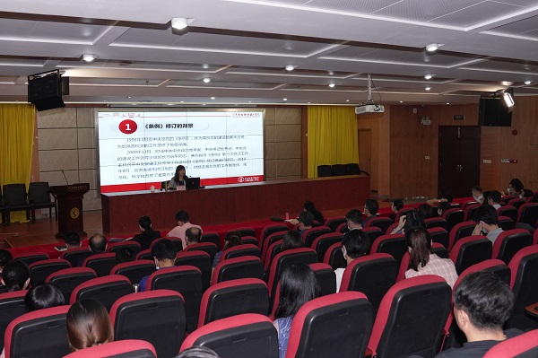 方燕介紹了《中國(guó)共產(chǎn)黨普通高等學(xué)校基層組織工作條例》(以下簡(jiǎn)稱《條例》)修訂的背景、過(guò)程、意義和主要原則,解讀了《條例》修訂、補(bǔ)充和完善的內(nèi)容及《條例》的學(xué)習(xí)貫徹。她指出,黨的十八大以來(lái),以習(xí)近平同志為核心的黨中央,高度重視加強(qiáng)黨對(duì)高校的全面領(lǐng)導(dǎo)和高校黨的建設(shè),作出一系列重大部署。《條例》深入貫徹習(xí)近平新時(shí)代中國(guó)特色社會(huì)主義思想,深入貫徹黨的十九大和十九屆二中、三中、四中、五中全會(huì)精神,貫徹落實(shí)新時(shí)代黨的建設(shè)總要求和新時(shí)代黨的組織路線,堅(jiān)持以黨章為根本依據(jù),對(duì)高校基層黨組織工作作出全面規(guī)范,體現(xiàn)了近年來(lái)高校黨建工作的理論、實(shí)踐和制度創(chuàng)新成果,是新時(shí)代高校黨的建設(shè)的基本遵循。