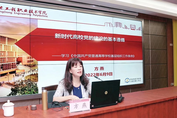 6月9日下午,學(xué)校黨務(wù)工作培訓(xùn)班第三講以視頻連線的方式在廣州校區(qū)圖書(shū)館報(bào)告廳、省職教城校區(qū)辦公樓411室舉行,黨委副書(shū)記方燕作題為《新時(shí)代高校黨的建設(shè)的基本遵循——學(xué)習(xí)<中國(guó)共產(chǎn)黨普通高等學(xué)校基層組織工作條例>》的授課,各黨總支、黨支部委員參加培訓(xùn),組織統(tǒng)戰(zhàn)部部長(zhǎng)劉松梅主持。