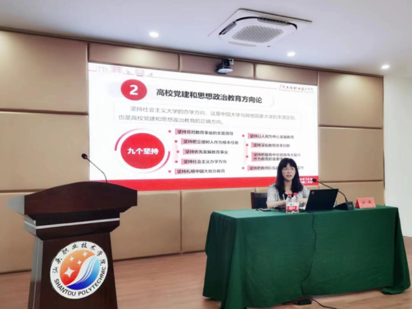 6月24日下午,方燕副書記在汕頭職業(yè)技術(shù)學(xué)院(以下簡(jiǎn)稱“汕頭職院”)作了題為“黨建鑄魂 引領(lǐng)高校思想政治工作高質(zhì)量發(fā)展”專題輔導(dǎo)報(bào)告。汕頭職業(yè)技術(shù)學(xué)院黨委書記王小輝、汕頭職業(yè)技術(shù)學(xué)院黨委副書記方小鐵等領(lǐng)導(dǎo)和教師參加。
