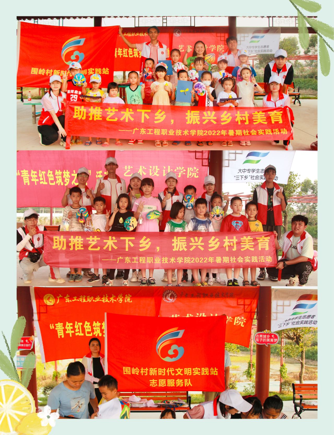 為貫徹習(xí)近平總書(shū)記關(guān)于青年工作的重要思想,引導(dǎo)和幫助廣大青年學(xué)生在社會(huì)課堂中“受教育、長(zhǎng)才干、作貢獻(xiàn)”,以實(shí)際行動(dòng)迎接黨的二十大召開(kāi),2022年7月26日至7月31日為期六天,廣東工程職業(yè)技術(shù)學(xué)院藝術(shù)設(shè)計(jì)學(xué)院向美而行實(shí)踐團(tuán)以“助推藝術(shù)下鄉(xiāng) 振興鄉(xiāng)村美育”為主題,10名師生深入惠州市博羅縣圍嶺村,開(kāi)展特色鄉(xiāng)村美育、實(shí)地考察調(diào)研、助農(nóng)務(wù)農(nóng)電商直播等內(nèi)容系列社會(huì)實(shí)踐活動(dòng)。