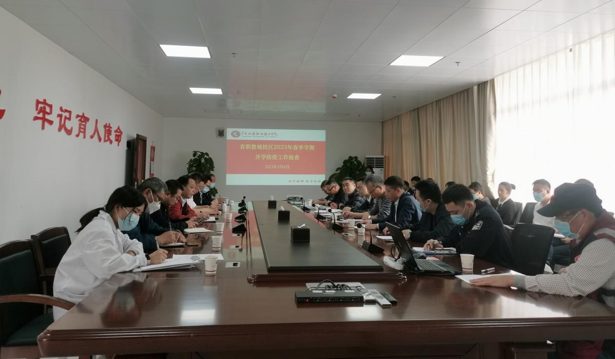 3月6日下午,廣東省職教城(清遠(yuǎn))高校防控新冠病毒疫情聯(lián)防聯(lián)控專項(xiàng)工作組到我校省職教城校區(qū)開(kāi)展2023年春季學(xué)期開(kāi)學(xué)防疫工作專項(xiàng)檢查。學(xué)校黨委委員、副校長(zhǎng)揭英榮出席反饋會(huì)。黨政辦公室、學(xué)生工作部、總務(wù)后勤部等部門負(fù)責(zé)人及相關(guān)人員陪同檢查。