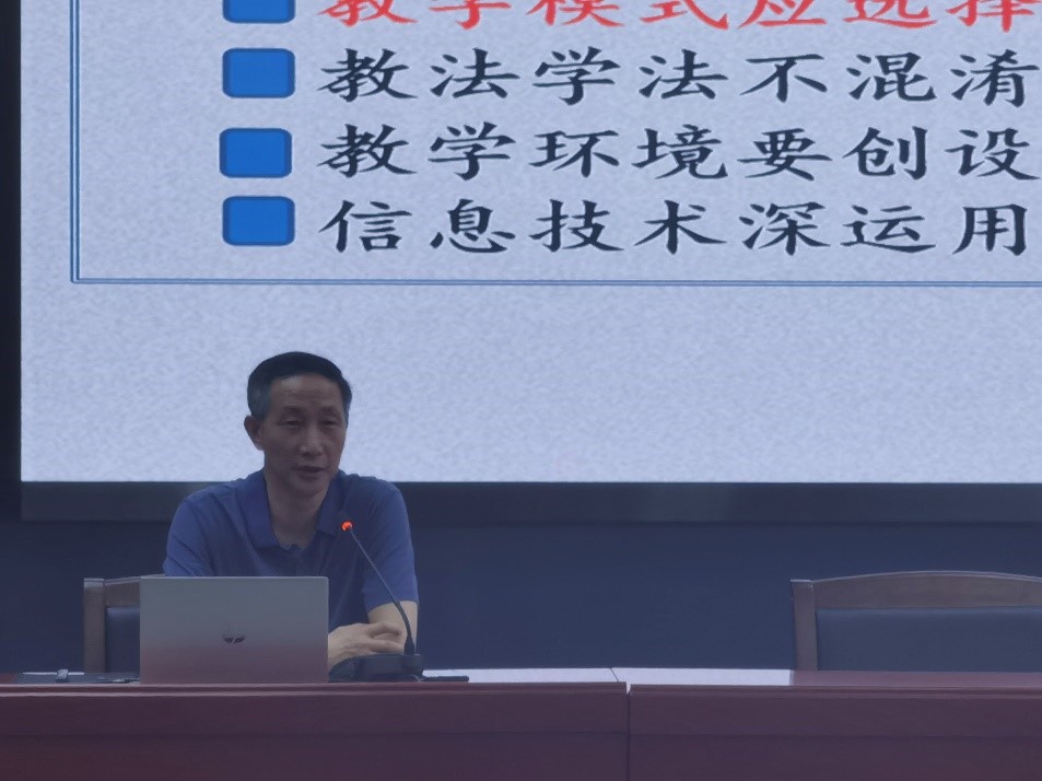 下午場蔣伯杰副校長以“教師教學(xué)能力比賽——優(yōu)化教學(xué)設(shè)計”為題,為全體教師從教學(xué)能力比賽方案整體解讀,比賽材料提交呈現(xiàn)的基本要求、比賽評審的基本要點等方面進行深入剖析,圍繞教學(xué)設(shè)計、比賽選題、課程重構(gòu)、人才培養(yǎng)方案、課程標(biāo)準(zhǔn)、教學(xué)實施報告、教案四個文檔撰寫等方面做了細(xì)致精彩的講解,特別提出要加強“課程思政”建設(shè),深挖思政元素。