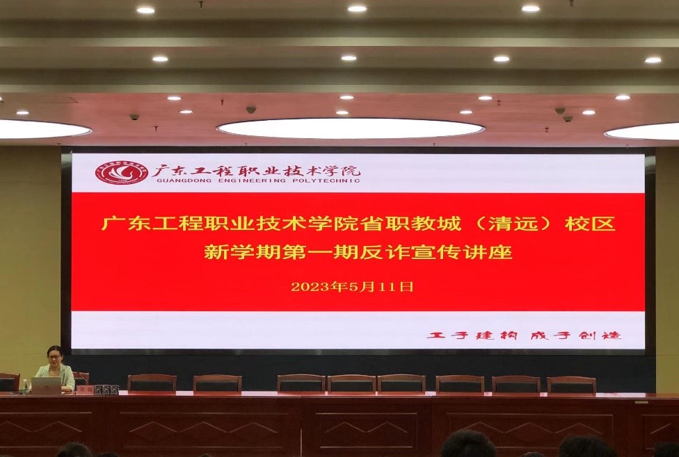 5月11日,學(xué)校在省職教城(清遠(yuǎn))校區(qū)辦公樓一樓報(bào)告廳開展2023學(xué)年第一期反詐宣傳講座;到場(chǎng)人員有各行政部門老師、二級(jí)學(xué)院書記和副書記、輔導(dǎo)員、在清遠(yuǎn)校區(qū)沒課的老師、物業(yè)安保、宿管員、部分學(xué)生等。反詐講座由總務(wù)后勤部(安保處)組織和主持,清遠(yuǎn)市反詐中心謝越老師主講。
