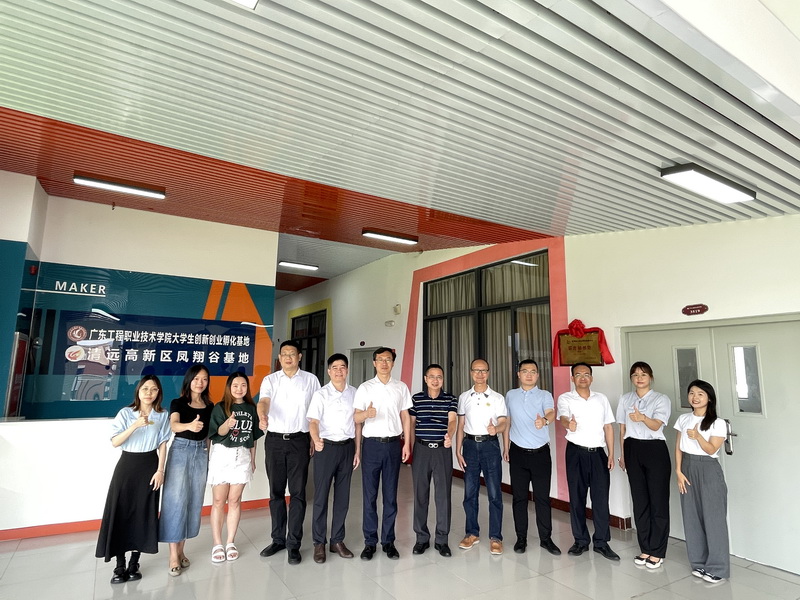 座談會(huì)后,與會(huì)人員一同前往學(xué)校清遠(yuǎn)高新區(qū)鳳翔谷大學(xué)生創(chuàng)新創(chuàng)業(yè)孵化基地舉行粵港澳大灣區(qū)青年創(chuàng)新中心清遠(yuǎn)聯(lián)合秘書處揭牌儀式,并實(shí)地參觀創(chuàng)新創(chuàng)業(yè)孵化基地建設(shè)情況。