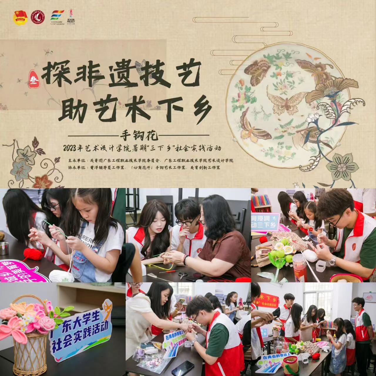 為深入學(xué)習(xí)貫徹黨的二十大精神,弘揚(yáng)中華優(yōu)秀傳統(tǒng)文化,推進(jìn)文化自信自強(qiáng),引導(dǎo)大學(xué)生在實(shí)踐中體悟工匠情懷,激發(fā)青春力量的使命擔(dān)當(dāng), 8月13日,向美而行實(shí)踐團(tuán)來(lái)到汕頭市澄海區(qū),「心有花開(kāi)」手鉤藝術(shù)工作室主理人林碧薇老師,手鉤花藝術(shù)家林慕玟老師和陳梅煌老師帶領(lǐng)我們認(rèn)識(shí)潮汕非遺傳統(tǒng)技藝手鉤花。本次三下鄉(xiāng)活動(dòng)設(shè)置了非遺手鉤花展示直播、非遺技藝體驗(yàn)、與非遺手鉤花藝術(shù)家交流非遺技藝等環(huán)節(jié)。手鉤花藝術(shù)家們對(duì)手工編織藝術(shù)的熱愛(ài)和非遺文化傳承的使命感,以精益求精的工匠精神和對(duì)作品的精雕細(xì)琢,帶領(lǐng)實(shí)踐團(tuán)隊(duì)傳承非遺,開(kāi)啟“沉浸式”非遺鉤花技藝體驗(yàn)之旅。實(shí)踐隊(duì)員們?cè)阢^花老師的指導(dǎo)下切實(shí)體會(huì)到了非遺手鉤花的獨(dú)特魅力,從基本針?lè)ǎ捷喞€條、再到成品呈現(xiàn),隊(duì)員們?cè)诖┽樢€中感受手鉤花這一非物質(zhì)文化遺產(chǎn)的傳統(tǒng)之美。通過(guò)本次三下鄉(xiāng)的走訪拍攝、實(shí)踐學(xué)習(xí),實(shí)踐團(tuán)成員們充分領(lǐng)略了中華非遺文化之美,提升了學(xué)生的審美情趣及藝術(shù)素養(yǎng),蘊(yùn)涵獨(dú)特的育人價(jià)值。