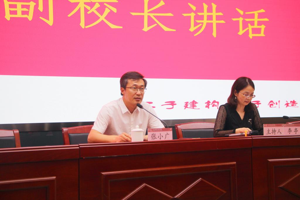張小廣副校長(zhǎng)做了講話,張小廣副校長(zhǎng)首先代表學(xué)校對(duì)新入職的教職工表示了歡迎,并從學(xué)校歷史、辦學(xué)條件、師資力量、招生就業(yè)、教育教學(xué)、學(xué)生競(jìng)賽、創(chuàng)新創(chuàng)業(yè)、產(chǎn)教融合等方面介紹了學(xué)校概況,從國(guó)家政策、個(gè)人發(fā)展等方面介紹了職業(yè)教育現(xiàn)狀,張小廣副校長(zhǎng)指出學(xué)校黨委一直以來(lái)高度重視青年教師培訓(xùn),對(duì)參訓(xùn)人員提出了兩點(diǎn)要求:一是涵養(yǎng)高尚師德,強(qiáng)化“強(qiáng)國(guó)有我”的使命擔(dān)當(dāng);二是潛心鉆研業(yè)務(wù),造就“強(qiáng)國(guó)有我”的過(guò)硬本領(lǐng)。