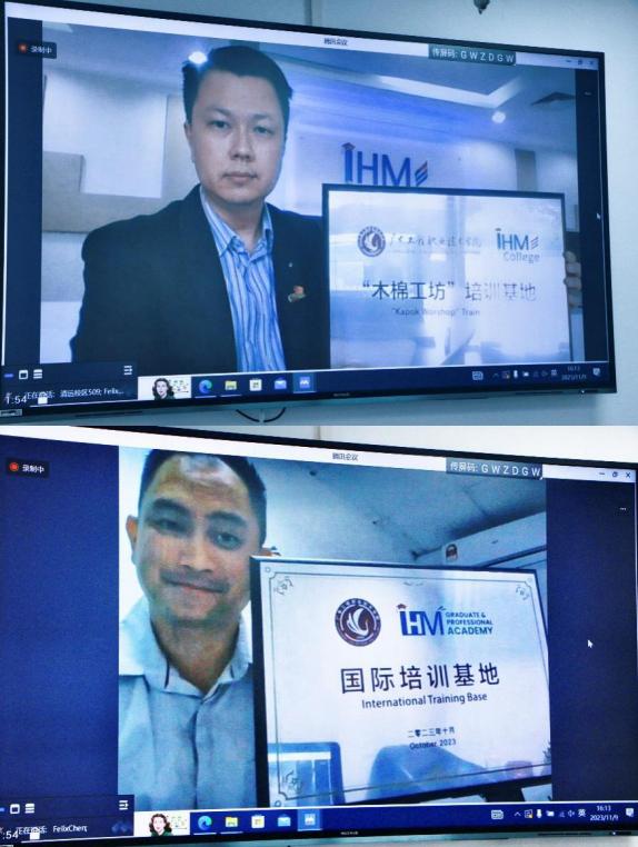 吳志敏代表學(xué)校分別與IHM College、IHM Training Center簽訂了友好合作協(xié)議,并與馬來西亞院校分別舉行“木棉工坊”、“國際培訓(xùn)基地”掛牌儀式。