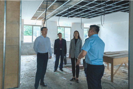 會后,省科協(xié)評估工作組一行到學(xué)校國際交流與合作中心(在建)進行實地考察。