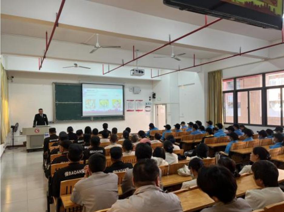 培訓(xùn)的第一個環(huán)節(jié)是兩校區(qū)安保部經(jīng)理講解消防安全知識。內(nèi)容主要包含火災(zāi)隱患的識別、消防器材及其使用的介紹、初期火災(zāi)的撲救、應(yīng)急疏散及逃生技巧等。
